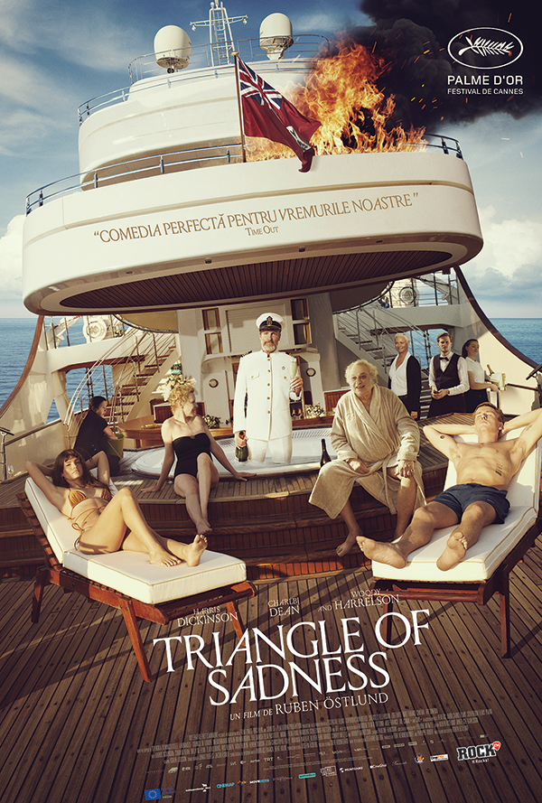 Castigator al Palme d’Or la Cannes 2022 si nominalizat la Premiile Oscar 2023 (Cel mai bun film, Cel mai bun regizor, Cel mai bun scenariu original), Triangle of Sadness (regia Ruben Östlund) ii urmareste pe Carl (Harris Dickinson) si Yaya (Charlbi Dean), un celebru cuplu de fotomodele, a caror aventura intr-o croaziera de lux se transforma intr-un spectacol grotesc. Filmul va putea fi urmarit pe HBO si HBO Max din 19 martie 2023.